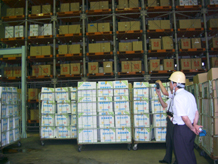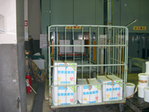 「医療廃棄物自動倉庫」 ○各排出事業者より集められた医療廃棄物は、ここに搬入され一時保管されます。 ○その後、順次焼却炉に搬入され焼却処理されます。また、この装置は、夜間でも自動的に感染性医療廃棄物を焼却炉に搬入するので、24時間の運転が可能なのです。 |